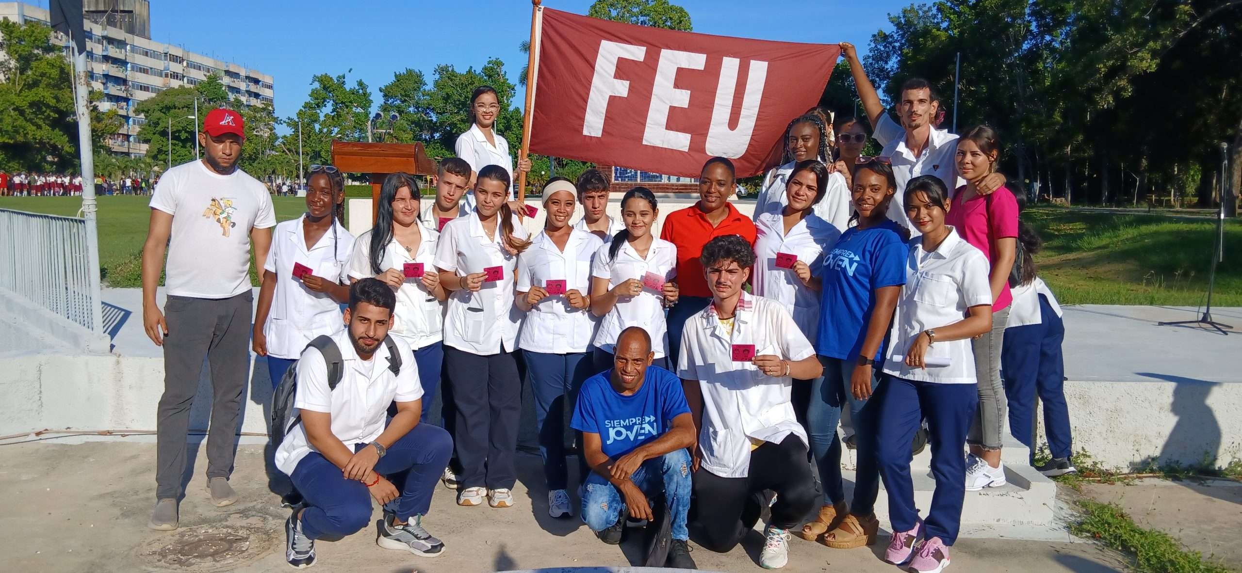 Frente al Cubo de la Victoria el espacio fue propicio para recibir en la Federación Estudiantil Universitaria (FEU) a quienes comenzaron su primer año en la Facultad de Ciencias Médicas del territorio, con la entrega del carné correspondiente.