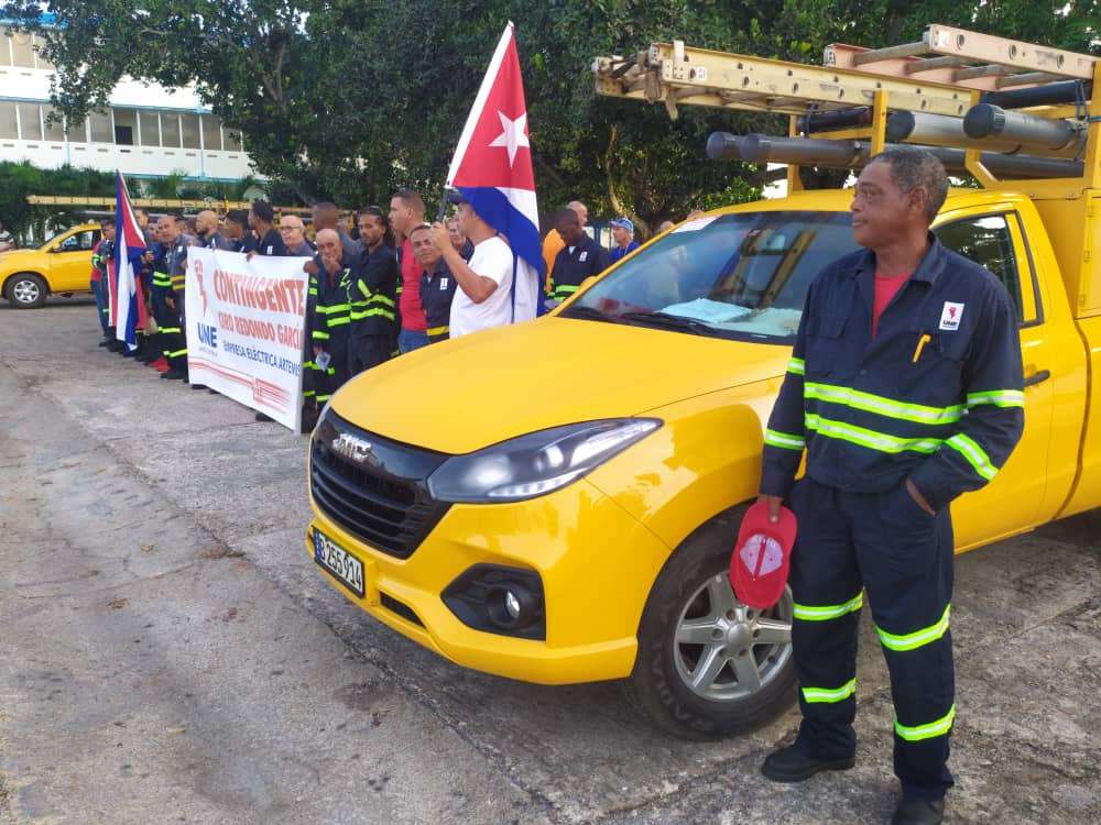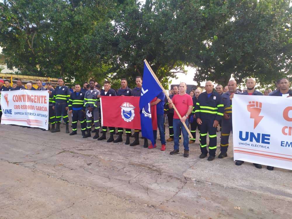 En la despedida de los linieros estuvo presente Risleydis González Díaz, integrante del Buró Provincial del Partido, junto a otros miembros del secretariado provincial del CTC en Artemisa.