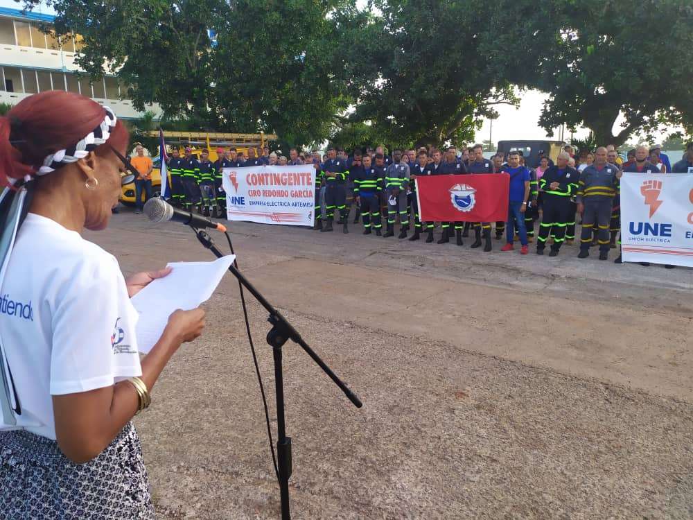 En la despedida de los linieros estuvo presente Risleydis González Díaz, integrante del Buró Provincial del Partido, junto a otros miembros del secretariado provincial del CTC en Artemisa.