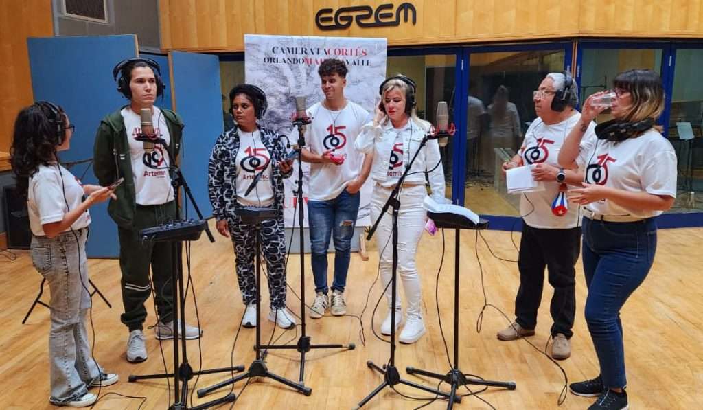 ¿Percusión? -Listo. ¿Piano? -Listo. Silencio. Se graba. Solo se escuchan unas voces en la cabina y el coro en el estudio, ese que da sentido a la letra de la canción dedicada a nuestra Artemisa en su aniversario 15.