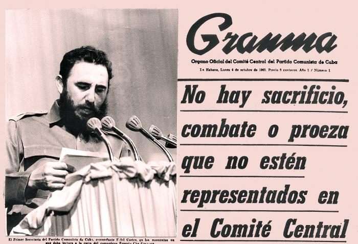 Nació Granma ese día, resultado de la fusión de los periódicos Hoy y Revolución, y la primera plana, que copó las calles al día siguiente, perpetuó en sus titulares los otros tres momentos que consagraron la fecha: la decisión unánime del nombre que, desde entonces, tendría el único Partido, el Partido Comunista de Cuba; la presentación de su primer Comité Central; y la lectura de la carta de despedida del Che a Fidel y al pueblo cubano, para irse a ofrecer al mundo «el concurso de mis modestos esfuerzos».