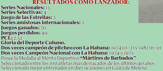 Mientras conversa se sonroja el rostro y entrecorta la voz. La emoción y la nostalgia se apoderan de él. Recuerda sus dos veces como campeón de pitcheo en victorias y derrotas en 1974 y 1982. También el récord vigente como novato, con once triunfos, y el segundo lugar en promedio de carreras limpias. Todo gracias a su gran control y excelente curva lateral y hacia abajo.