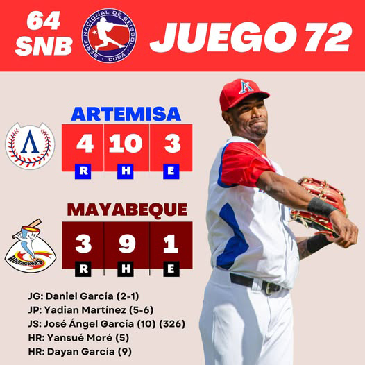 El domingo los nuestros dominaban a Mayabeque 4-0 en la novena entrada, cuando ellos se rebelaron. Tras una gran labor del novato Daniel Alejandro García durante 5.1 episodios, a continuar por Leonardo Ocle, Sánchez y José Ángel García, el marcador se cerró 4-3.