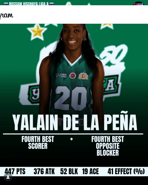 La voleibolista artemiseña fue sexta en la Copa Panamericana celebrada en México, participó en el Mundial de Tailandia y en los Panamericanos Junior. Está contratada en la Liga de Rusia con el club Uralochka y ahora con Amurskie Tigritsy.