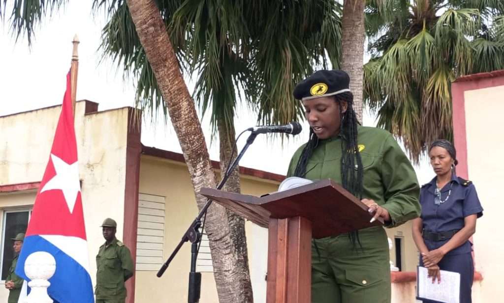 La teniente Milagro Pérez Posada, al frente del trabajo político en el batallón de tanques, insistió en el compromiso de la juventud de defender el sistema socialista al precio que sea necesario, al tiempo que repudió las acciones belicistas contra el hermano pueblo de Venezuela y ratificó el apoyo de Cuba frente a la situación por la cual atraviesa.