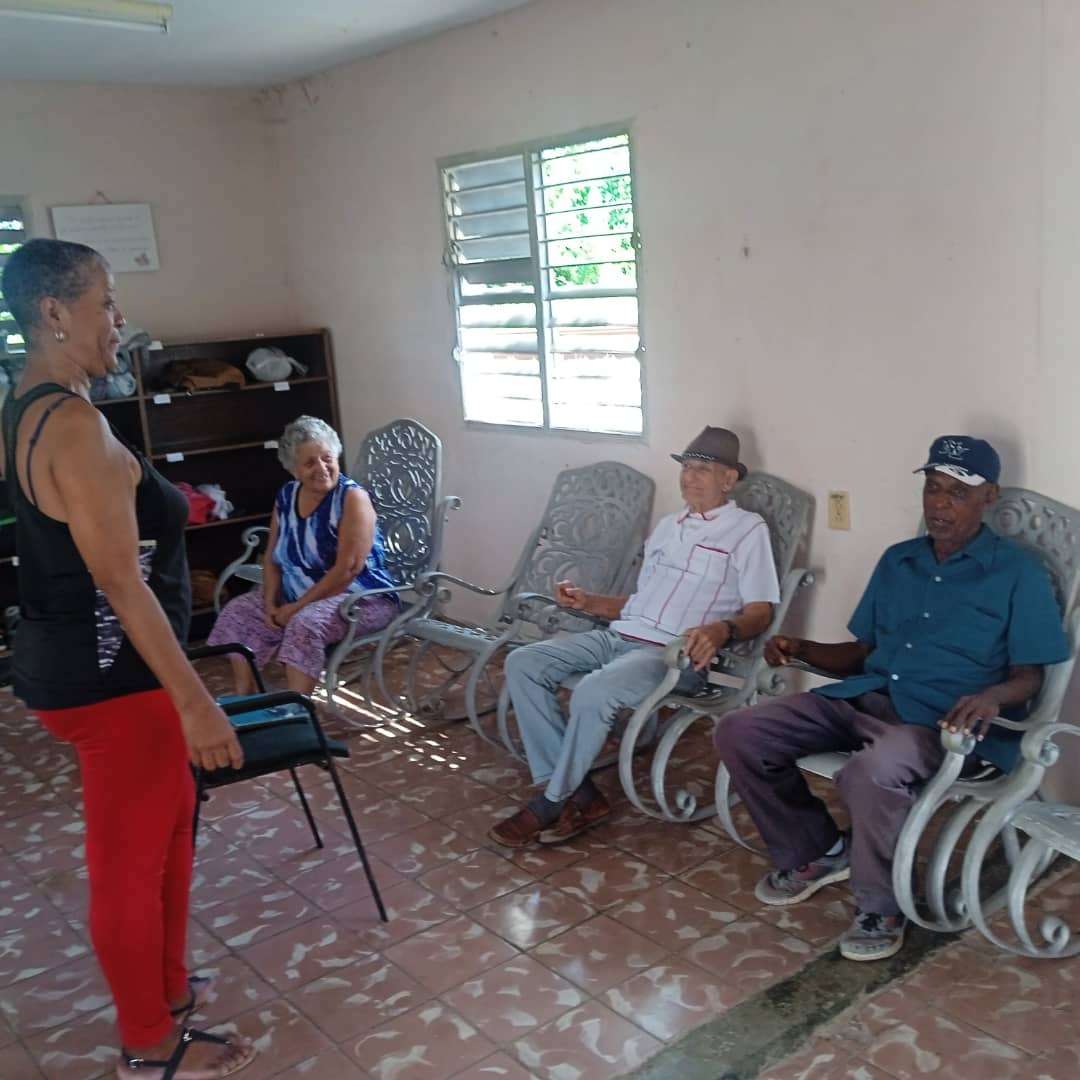 La Casa de los Abuelos pertenece al policlínico Flores Betancourt, ubicado en el casco urbano municipal, y los abuelos que reciben sus beneficios son apenas una parte de la razón del trabajo de María del Carmen, quien, además, realiza labor de terreno, atiende lactantes, embarazadas adolescentes, casos de personas postradas, gestiona ingresos hospitalarios para ancianos sin compañía o sin familia…