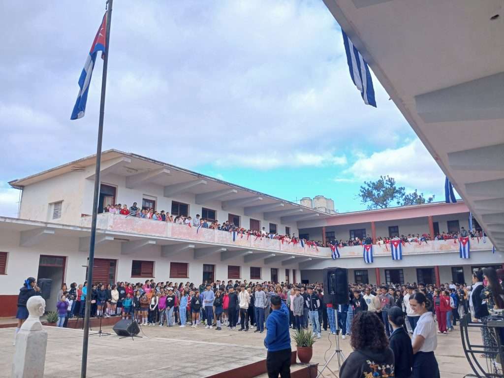 Hoy no es un martes cualquiera. Es 24 de febrero y la fecha pesa en la memoria de esta Patria. Más de una centena de estudiantes de primaria, secundaria y preuniversitario del municipio cabecera, protagonizaron el matutino especial realizado en el IPU: Eduardo García Lavandero, del municipio Artemisa, en recordación de la historia que aún late en muchos cubanos.