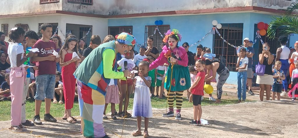 La sonrisa de los más pequeños, inapreciable y valiosa en cualquier época de la humanidad, conquistó hoy no pocos corazones. La circunscripción uno, del Consejo Popular Reparto Nuevo, del municipio cabecera, se estremeció con su alegría, al disfrutar del espectáculo protagonizado por la payasita Claritica y el payaso Rollo, (interpretados por la actriz artemiseña Clarita García y su papá).