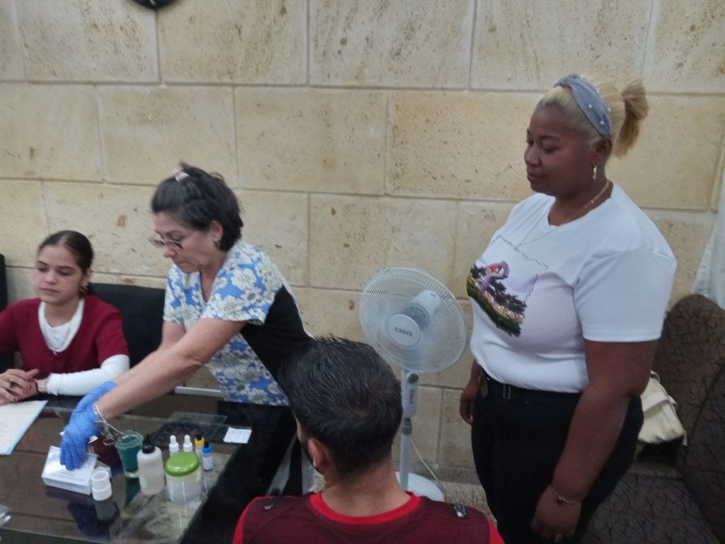 En homenaje a las efemérides del 4 de abril la fiscalía de Artemisa se convirtió en un laboratorio y se improvisó la extracción en un salón de reuniones, donde Yaima Simón Terry, responsable del Departamento de Protección a las Familias y Asuntos Jurisdiccionales en la fiscalía artemiseña, ya perdía la cuenta de las veces que ha brindado su gota, incondicionalmente.