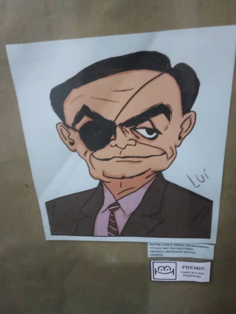 El jurado, presidido por Carlos Coronado, artista de la plástica y el humor gráfico en la Villa del Humor, decidió otorgar el Primer Premio en la categoría Caricatura Personal a Luis Enrique Pérez Echevarría, por la obra Walter Martínez.