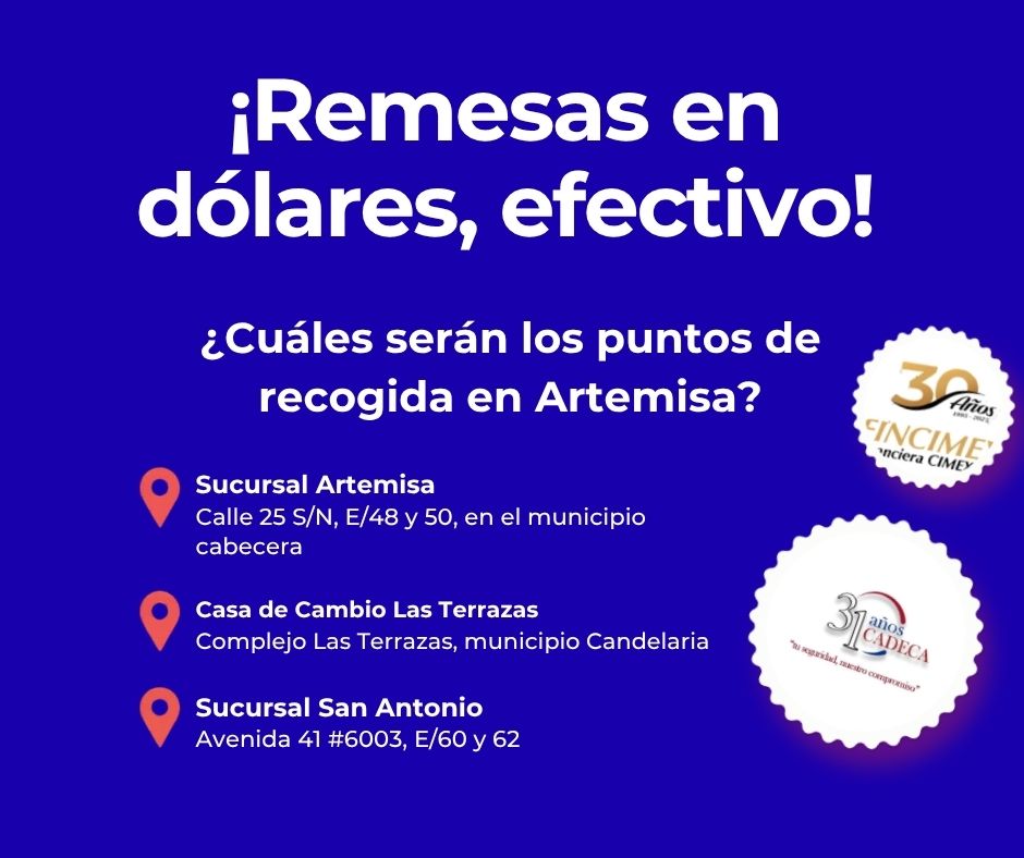 ¡Remesas en dólares, efectivo! ¿Cuáles serán los puntos de recogida en Artemisa?